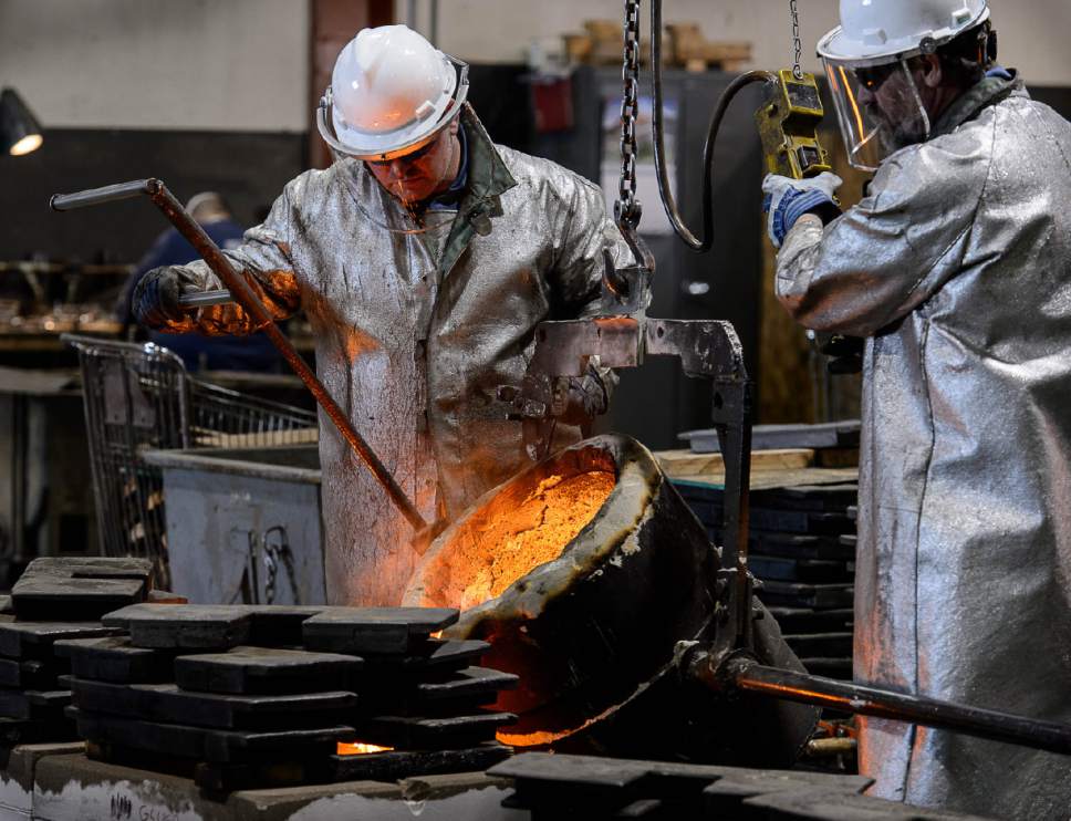 Devin Rockne and Howard Bailey of Historical Arts & Casting in West Jordan oversees the pour, creating features for the U.S. Capitol dome, Tuesday March 31, 2015. The foundry is where pieces of the domeís cast iron ornamentation that cannot be repaired will be recast and sent back to Washington, D.C., for replacement on the Capitol. (Photo courtesy of Trent Nelson | The Salt Lake Tribune)