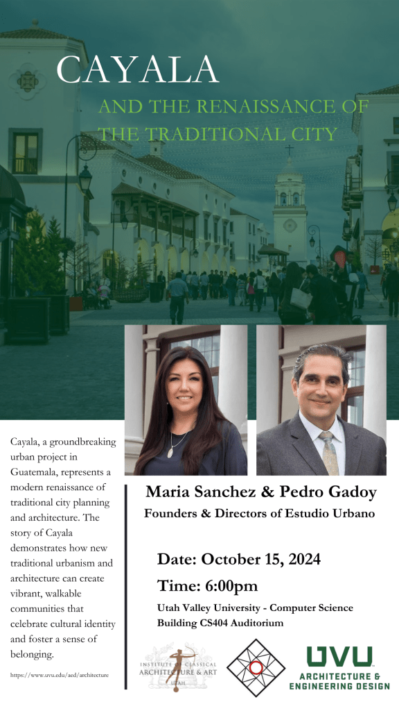 Please join the Utah ICAA for an evening with architects Maria Sanchez & Pedro Gadoy. They will discuss their recent project in Guatemala, designed in collaboration with Leon Krier.